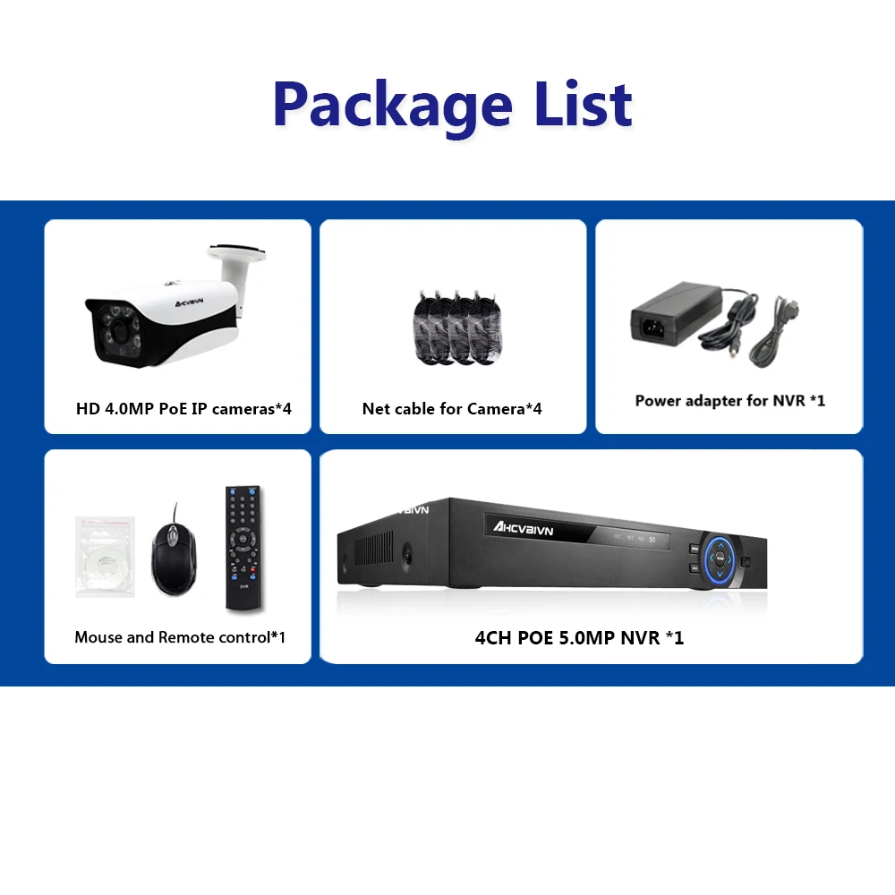 Related Product for Full HD 5.0MP 4Channel CCTV System 4 pcs 4MP Outdoor IP Camera 4CH 1080P 5MP POE NVR CCTV Kit HDMI